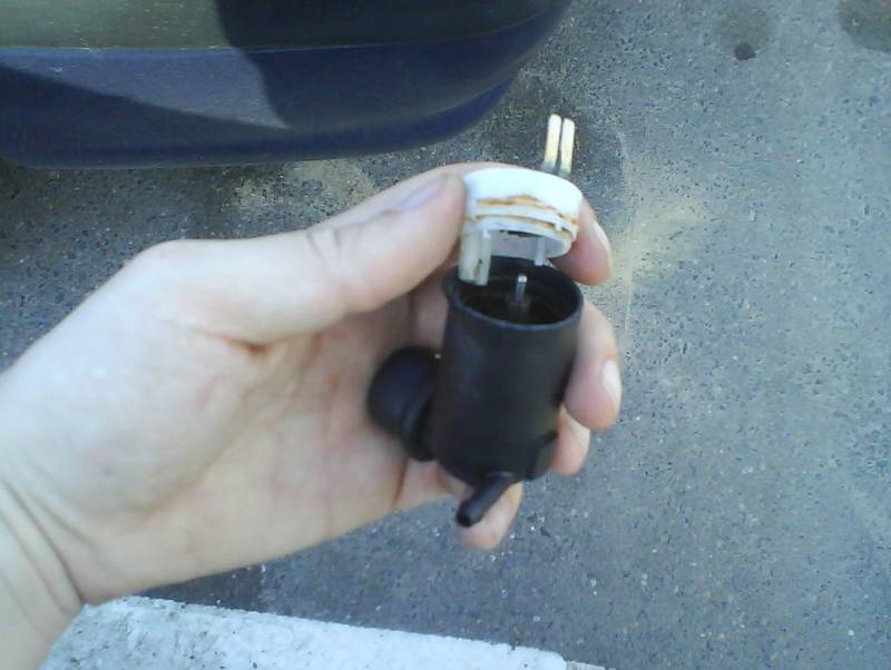 В общем, починил, кому интересно, мини-отчет ниже.Ну как и писал Daiver, стоит только потянуть от бачка и моторчик в руках. К потоку жидкости из бачка был готов, поэтому шока не было Жидкость спущена, моторчик в руках. Взял и 12 вольт на контакты подал - мертво...новый покупать жаба душила, решил-таки разобрать. Сразу сорри за качество фоток, на телефон делал.В начале снимаем зеленую крышку, поддев ее чутка отверткой и тянем вверх.Далее просовываем отвертку между черным пластиковым корпусом и белым вкладышем, на сантиметр-полтора, и тоже подковыриваем и тянем вверх.Пластмасса корпуса хорошо гнущаяся, так что можно не бояться сломать, просто отогнется. С противоположной стороны от контактов нужно глубже подковырнуть, потому что там пластмассовый типа штырь. В общем, подковырнули, потянули вверх и крышка с контактами тоже свободна.Переворачиваем эту белую крышку с контактами и ужасаемся.На контактных пластинах куча налета, грязи и пр. ...на, его-то и отчищаем, я отверточкой пошкрябал, вэдэшкой залил еще раз пошкрабал, протер, красота!Далее вынимаем сердечник, который тоже в грязи. Его тоже чистим, основной упор на контактные пласнинки, которыые по кругу идут.Вставляем сердечник обратно в пластиковый корпус, сверху надеваем белую крышку с контактами и сверху надеваем зеленую крышку. После этого я подал 12 вольт и моторчик зажужжал как новый.При постановке назад нужно уделить внимание резиновому колечку. Его вначале поставить в бачок и потом уже всовывать туда моторчик. Одеваем фишку 12 вольт, трубку на моторчик. Закручиваем защиту и заливаем жидкость в бачок. Все работает на ура! Если кому поможет мой отчет - буду рад.