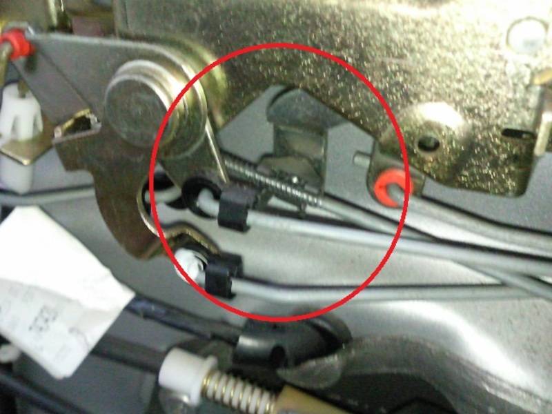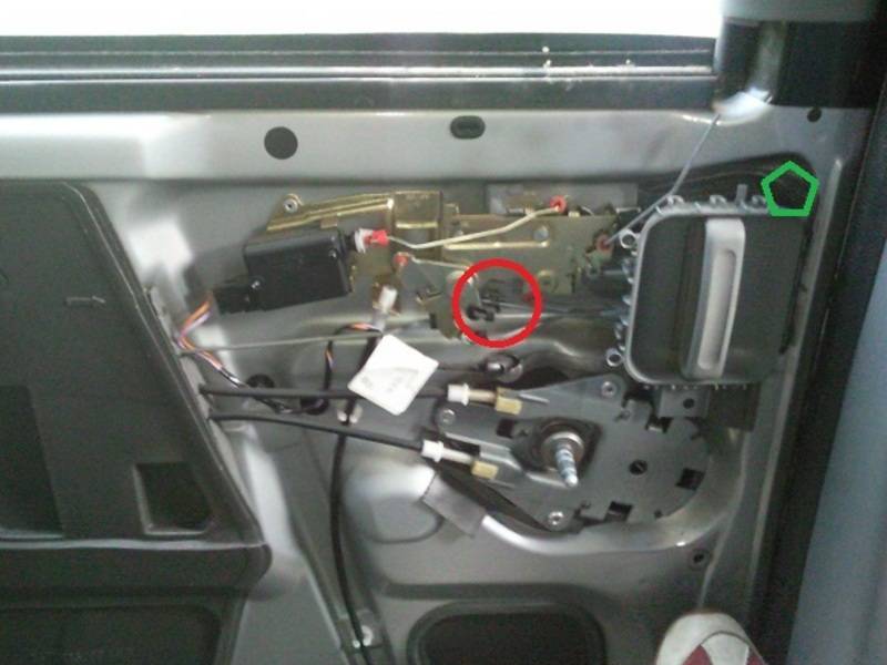 пофиксил проблему с лючком - наверно мастера просто криво его поставили на место так же пофиксил тягу - проблема была такая же как и у топикстартера, проблема в одной единственной тяге на картинке в красном кружке собственно видно и почему - все тяги сделаны Г-образными, и одна эта в виде какого то шурупа.. в теории её можно отрегулировать сняв снаружи ручку двери и не снимая снутри обшивку, но я не понял как снять саму ручку с тяг, т.к. там они С-образные - боялся сломать. если снять ручку- то снаружи эту тягу можно просто "вкрутить" внутрь глубже а чтобы снять ручку надо "всего лишь": снять накладку на внутренней ручке чуть чуть оттянуть обшивку в месте где на картинке зеленый многоугольник под шумоизоляцией - дырка для ключа - там в глубине гайка на 10, которую надо открутить (!! используйте магнитную головку чтобы гайка не упала внутрь дверки как у меня ) после этого снаружи ручку надо дернуть вверх и на себя - и она остается висеть на одних тягах если их снять, то тягу открытия дверки можно "закрутить" по часовой стрелке внутрь - и ручка будет открывать как новая. но это лишь теория. у кого нить есть нормальный метод как правильно поставить на место защелку двери (деталь 11 (+13) на схеме в файле ручка.pdf?) у меня она все время защелкивается т.о. что торчит вверх на лишних 5-10мм ручка.pdf