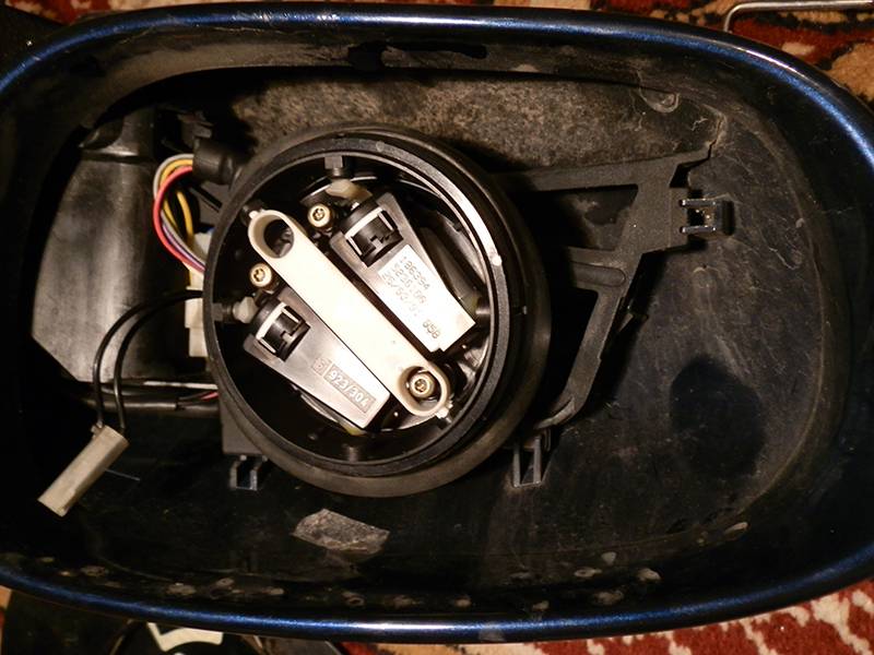 Парочка фотографий и немного текста, как добраться до механизма складывания зеркала Может пригодится кому. Для начала необходимо поднять зеркало вверх (ручкой управления зеркалом) Затем снять обшивку двери, отогнуть декоративную накладку и выкрутить болт крепления зеркала (размер: 13, находится под резиновым уплотнителем) Зеркало у вас в руках. Если заглянуть под стекляшку, то можно увидеть два металлических усика. Их надо отогнуть от себя и каждый в свою сторону. После этого отсоединить провода подогрева стекляшки и положить её куда-нибудь недалеко Чтобы снять корпус зеркала, как написано в сервис боксе, надо найти защелки и отщелкнуть их. Как показывает практика, они легко ломаются, и лучше (по-моему мнению) стягивать корпус со стороны механизма. После того как сняли корпус, отсоединяем фишки проводов, а для большего удобства ещё придется скрутить механизм регулировки зеркала. После этого можно обратить внимание на эту шайбу Снять её тяжело, но с помощью отвертки и молотка снять можно. После того, как шайба покорена и висит на проводке, снимаем остаток корпуса зеркала от его основания, только аккуратно, может вывалиться фиксатор (маленький такой цилиндрик), не потеряйте его! Далее останется открутить 3 винта под звездочку (сорри, тут фото забыл сделать ). И все, смотрим что не так, чистим, смазываем, собираем в обратной последовательности. На последних двух фото видно, что я немного поорудовал надфилем Почему-то те места разбило и неровности не давали зеркалу работать как надо. Все почищено и смазано, теперь работает без проблем и тихо! (тьфу-тьфу-тьфу )