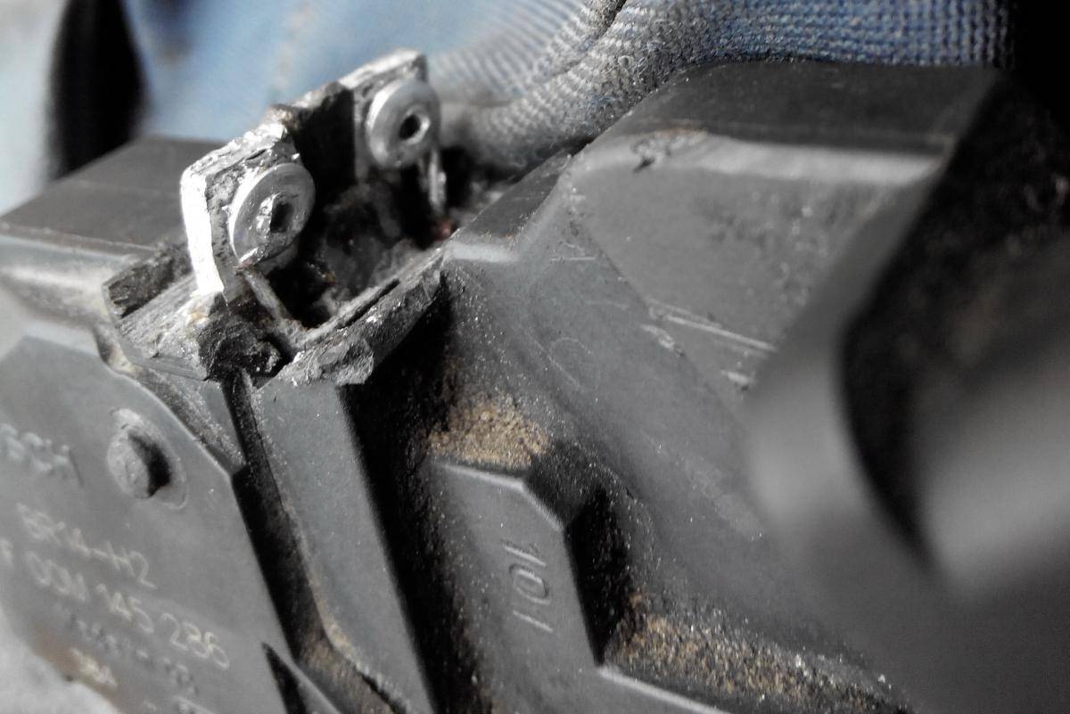 Спасибо graf_n за фотоотчет. Зашумел у меня подшипник генератора и я полез... оказался тоже Bosch 0 124 525 035 По кодам все запчасти подошли на отлично. Только долго думал как же разобрать регулятор, чтобы поменять щетки. В итоге при помощи ножевки по металлу и хорошего ножа он был разобран Долго пытался припаять щетки, но так и не вышло - контактные пластинки алюминиевые... долго думал что делать и в итоге пришел к 2-м равносильным вариантам: 1. найти шурупы до 2,5 мм в диаметре с плоской шляпкой (чтобы не выдавливало провода щеток при закручивании), 2. поставить заклепки. Шурупы не нашел. Аккуратно просверлил контактные площадки сверлом 2,5 мм Завернул вокруг заклепки "хвосты" щеток кольцом и залудил их (чтобы избежать гальванической пары медь/алюминий). Отогнул контактные пластины чтобы можно было подлезть заклепочником и приклепал далее все выровнял обернул слоем изоленты и залил по самые уши прозрачным герметиком. Родные щетки и выводы ротора к контактным кольцам были приклеены спец клеем. Если щетки я не жалел, то выводы ротора очень аккуратно пришлось отковыривать, т.к. они еще и прижаты были и имели зигзагообразную форму по длине. Собрал, поставил - работает.