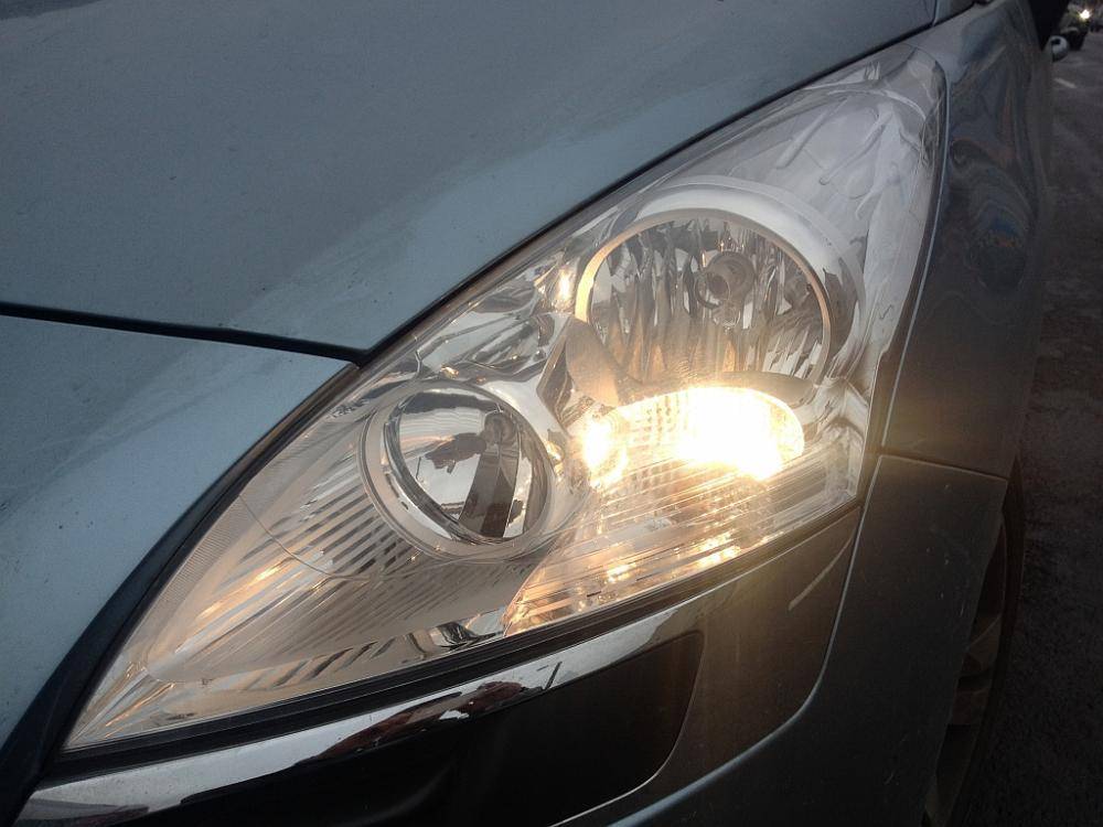 В отличии от ламп ДХО, лампы стояночных огней W5W стоят недорого. Вопрос экономии тут уже не стоит так остро, как в случае с ДХО. Однако стандартная лампа даст только одну цветовую температуру свечения, в отличии от светодиодных (LED). Источник приобретения светодиодных ламп выбираем сами, хотим в Китае, хотим на любом автомобильном. Отличие будет только в стоимости самой лампы и времени на ожидание. Лампа стояночного огня расположена в отсеке дальнего света. Снимаем резиновую крышку с обратной стороны фары. Для извлечения патрона с лампой стояночного огня необходимо пальцами нажать на ребристые ушки (см.фото фары изнутри). Легче это делать если нажать сначала одну сторону, придавить патрон в эту же сторону (дабы ухо осталось прижатым) и нажав на противоположное ухо потянуть патрон за провода к себе. После того, как заменили лампы – не спешите ставить патрон на место. Включите стояночные огни и проверьте, что лампы светят. Я ложанулся и вставил не той полярностью. Пришлось достать и развернуть лампу в цоколе на 180 градусов. Такая лампа, как поставил себе, имеет четыре диода по сторонам и два вперед с небольшой линзой. Ночью такая лампа не слепит. Свет распределяется по отражателю фары.