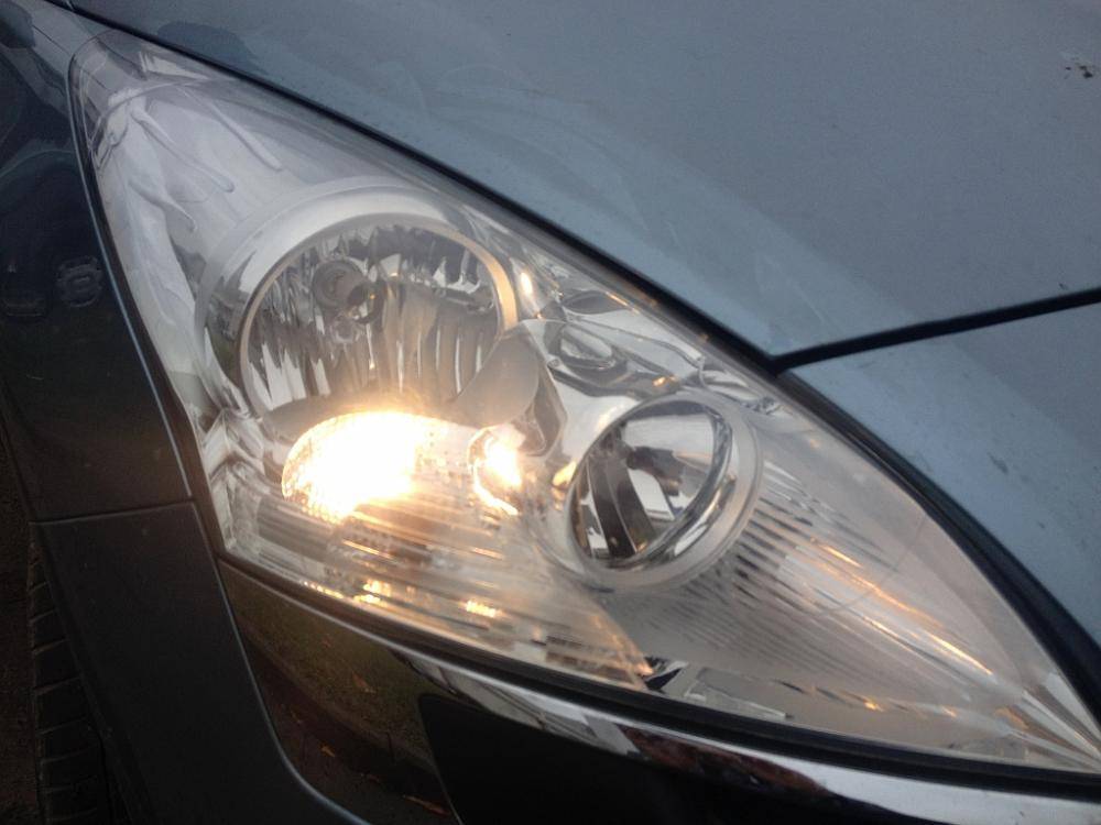 Жизненный цикл лампы дневного ходового огня тоже привел к замене данной лампы. Тоже задавила жаба покупать лампу за 30уй. 6 енотов за пару светодиодных. Для наглядности - левая фара светодиодная лампа, правая - оригинальная галогенка. Если кто-то будет заказывать - это цвет "Cold White". Единственное, что вынуть лампу из фары - занятие еще то. особенно с правой фарой. Кстати, торкс использовал 35, а не 40 или 50, как это рекомендовано в руковосдтве.