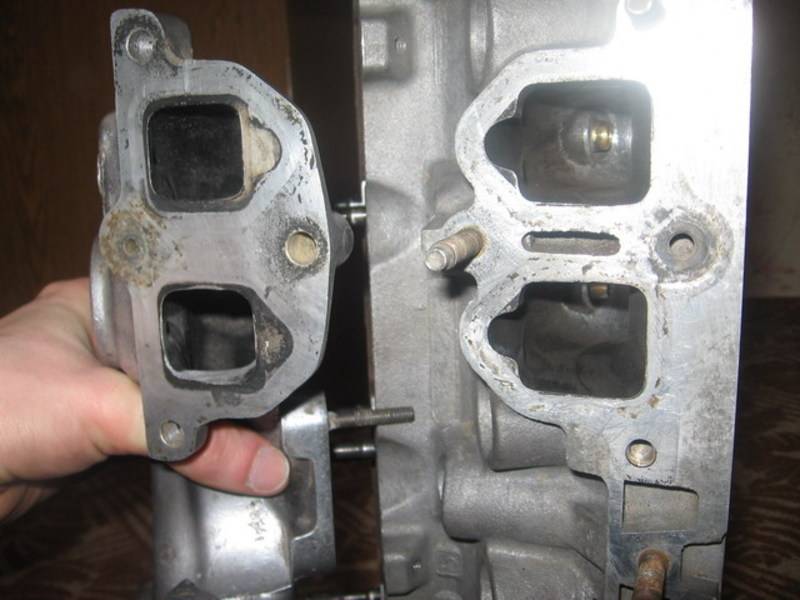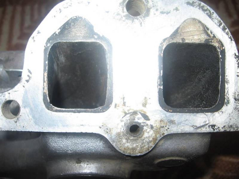 Разобрал я свой двигатель, а он оказался 1,9 Буду делать:- дорабатывать каналы в голове и впускном коллекторе- степень сжатия 10- дорабатывать клапана (если найду токаря)- Может облегчу шатуныРаспредвал меня огорчил.. Выпускной кулачек 1 цилиндра - нету 1мм подъема, а на впускном 3го нету 1,5мм Краткий фотоотчет о проделанной работеВпускной коллектор. Черный кантик - канал в голове(( Разница в размерах сумасшедшая. Площадь впускного канала в голове 1088мм2,а в коллекторе всего 852мм2. Если перевести в диаметры: 37,2 голова, а коллектор 32,9.Расчеты и возможные замеры показали толщину стенок 5мм, а стенка к охлаждению 3мм.Нужно растачивать, но как это сделать нормально - хз. Квадратные, меняющие направление каналы...Я решил точить в круг, а потом равнять в квадрат на входе в голову. Но все равно канал получится меньше, чем в голове.Если есть мысли как еще можно увеличить каналы - поделитесь.Еще вопросик:В выпускном канале есть такая отливка с каналом внутри. Канал выходит к выпускному коллектору. Видел у человека из выпускного коллектора выходили 4 трубки какраз из этих каналов, потом они объединялись в онну банку, которая у него была заглушена. У меня в коллекторе нет этих каналов.Собственно вопрос: что это? Можно ли сточить эту отливку? Просто думаю если сточу, её вскрытый канал начнет интенсивно забиваться нагаром.