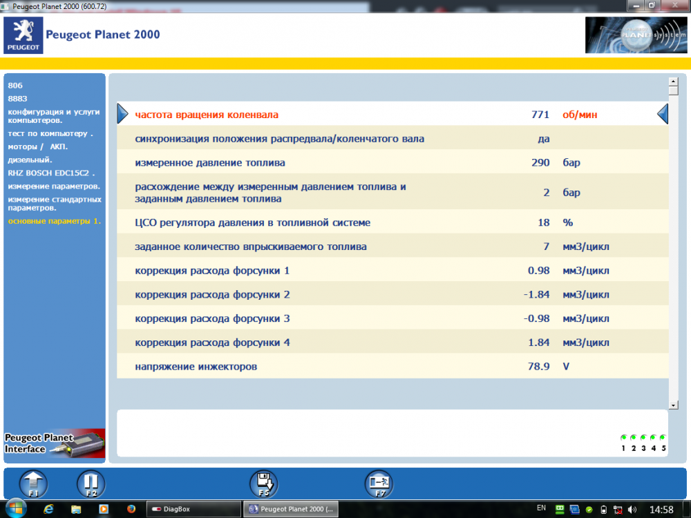 Пежо 806 2,0 HDI 8 клап. Поменял ремень ГРМ INA, ролики помпу, новое двухмасовое сцепление, прокладку ГБЦ, насос высокого давления Б/у, новый регулятор давления топлива, форсы купил комплект, завезли на отрегулировали выбрали лучшие. Машина завелась после ремонта, работала отлично, приятный звук, мягкая работа двигателя. Нарадоваться не мог. Решил сездить в 20-х числах на техосмотр, та долго стояла работала на холостом ходу, грелся (очереди большие были). В итоге там и заметил что что то приупали обороты холостого хода, но думаю может востановится. И машина больше обычного парить белым дымом (может от мороза, может я придираюсь). Я заехал в гараж, и увидел что ослаб ремень ГРМ (хотя покупал комплект роликов и ремня INA), натянули, но как плохо работала так и работает. Выставили метки и определили что перескочил ремень на один зуб. Все поправили машина стала лучше заводится и работать но страный звук цоканья по металу и пухканья остался, и заниженые обороты холостого хода. Но по разгорну и движениеи и заводке вопросов нет. Проверил на диагностике.