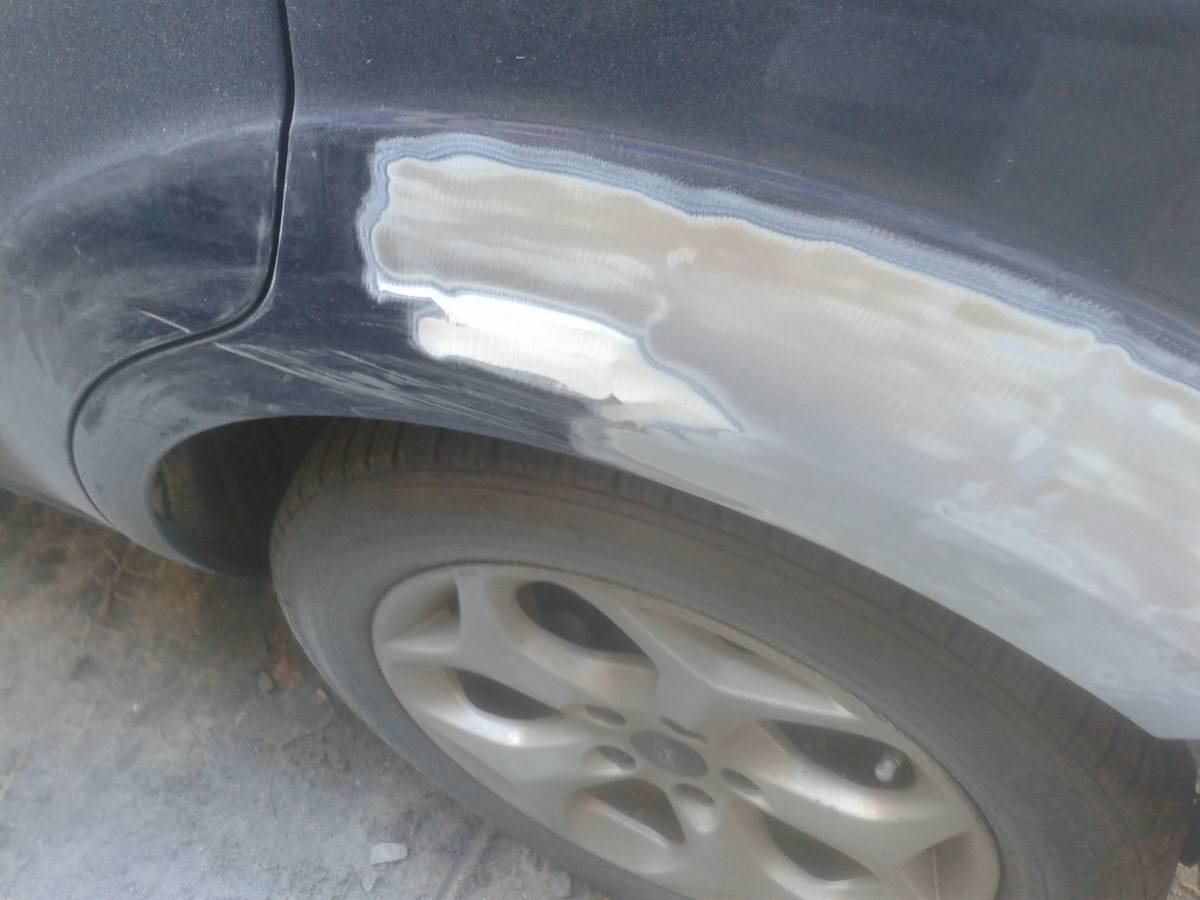Для чего в своей схеме ремонта я всегда удаляю старое ЛКП? Вот простой пример в фото. На стоянке зацепили авто, переднее крыло смяли, по двум дверям царапины, зацепили заднюю арку. По видимым повреждениям ремонт переднего крыла, ремонт задней арки, а двери-незначительный ремонт царапин. По словам клиента, ранее авто красили по причине того, что мать клиента9авто ее), заезжая в гараж незначительно поцарапала одну из дверей. Что я увидел на самом деле? Крыло отрихтовал кузовщик: