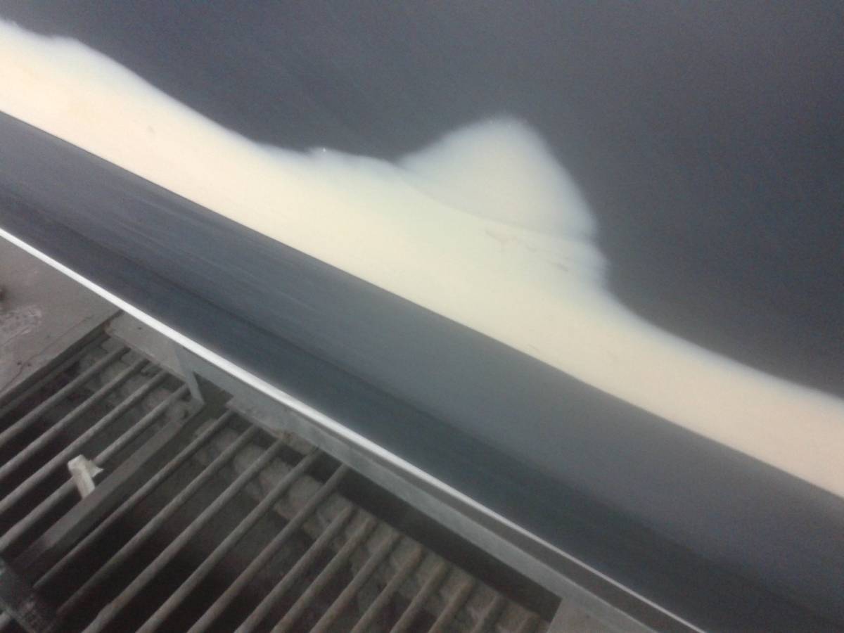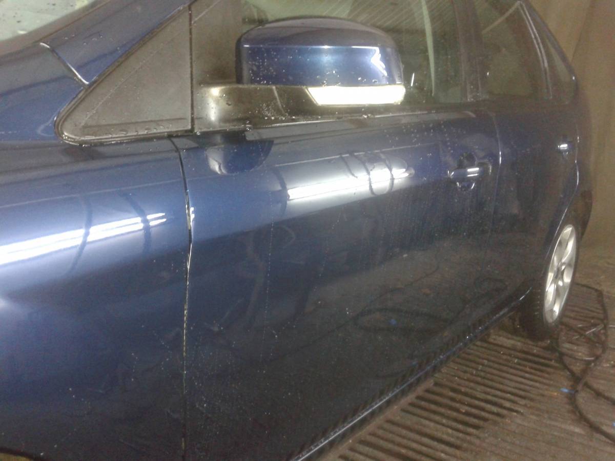 Принимаемся за царапины на дверях, и здесь вырисовывается картинка. Сознательно или нет, от меня было скрыто клиентом то, что двери просто вылеплены из шпатлевки. Толщина шпатлевки видна на калибровке фото с линейкой. Клиенту было доказано, что ремонт подобных деталей нецелесообразен, такая толщина ЛКП недопустима, но, клиент отказался в силу разных причин(от стоимости дверей, до сроков их поставки) покупать другие детали. Соответственно, все сносится, дверь рихтует кузовщик, наносим шпатлевку, но уже значительно меньший слой: