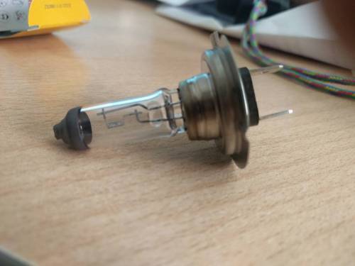 Виновником оказался topran на фото. После всех экзекуций всётаки перестал звониться, но нить целая, на второй лампе, которая чудесным образом заработала, после дня езды перегорела нить.