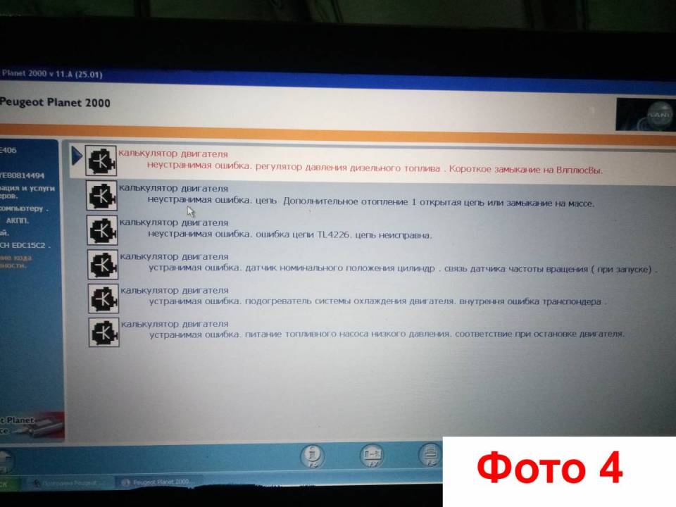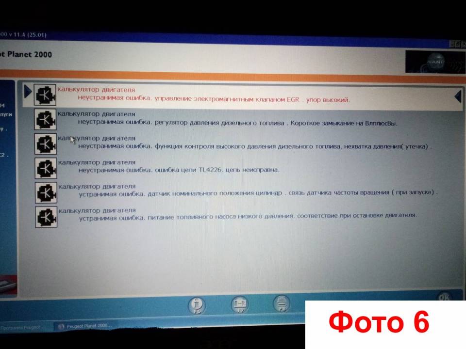 Обнаружил ещё один оборванный провод белого цвета, который идёт от генератора (фото 5), в косе проводов обнаружился оборвыш такого же цвета. Скрутил провода, попробовали завести - безрезультатно, ещё раз прочитал сканером - список ошибок немного изменился (фото 6).