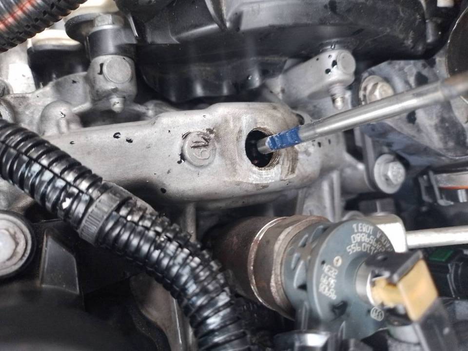 Здраствуйте. Хочу поделиться своей историей по замене цепи. 14000км назад заменил цепь грм фирмы SWAG, натяжитель оригинал. Метки на цепи были нарисованы серебристой краской. В итоге цепь растянулась и проскачила на зуб, загнуло 8 выпускных клапанов. Заменил 16 клапанов новых на оригинал, цепь HEPU, два распредвала. Думаю что я не один пострадал от такой цепи. Решил сделать контрольное отверстие, чтобы смотреть натяжение цепи щупом. Подобрал заглушку с мелкой резьбой и нарезал резьбу. Замер сделал на сжатом и разжатом натяжителе