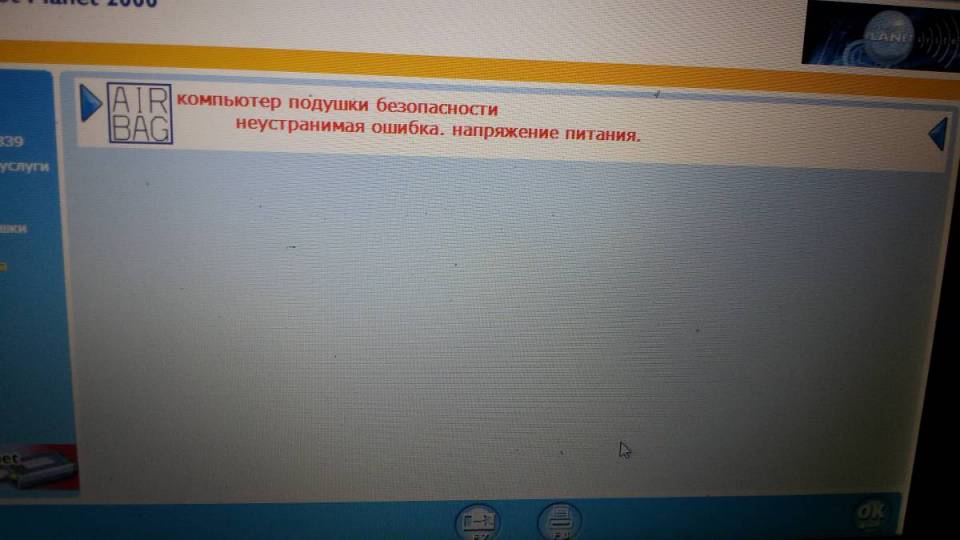 Здравствуйте!!! расскажу историю с начала. что то похожее было на форуме но как устранили проблему так и не нашел. помогите кто чем может... Купил машину. вызвал диагноста. тот говорит ошибка по подушке водителя и два преднатяжителя ремня.Ага!!начитавшись форумов понял что в машине крэш. Благо на форумах есть люди готовые прийти на помощь.(Огромное спасибо Данилу из Керчи за тех помощь и нервы со мной). Заказываю с Алика программатор и Лексию. Программатор в гомеле найти нереально!!! а за то что зальют дамп который я принесу програмеры хотят 25 $!!!!! я говорю! Он на Алике стоит 5$!!! (ох, это о наболевшем) Мы подрубаемся в Блок управления подушками, чистим дамп, Но все равно лексия ошибки не скидывает. остается одна. Компьютер подушки безопасности. Неустранимая ошибка. Напряжение питания. Предлагает проверить контакты. Думал в блоке дело.. Еду на разборку. мне дают +100500 блоков говорят выбирай. Покопавшись там же с чудо компьютером нашел две целые, без крэша, но и в них выскакивает такая же ошибка по Напряению питания. что делать? куда Копать???Шлейф разобрал может кто подскажет что можно прозвонить и на что стоит обратить внимание?