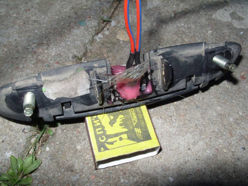 короче, победил я это гав...о, микрику резиночка-пружинка не поможет, мой сдох окончательно и безповоротно. 50 уе отдавать за "его" в мои планы не входило, а купил я кнопочку за 2 тыщи бел. рублей(0,5 евро- для тех кто читать это будет за пределами РБ), она хитрая, без фиксации, и припаял к ней два проводочка.И приступил к разборке двери, аккуратненько снял накладочку с ручкии вот что получилось. Затем снял обшивку багажника, предварительно открутив два шурупчика . Привожу вам фото самой обшивки, что бы ориентировались где находятся защёлкиИзнутри нужно головкой на 10 открутить две гаечки и снять фишку с враганарода-"микрика" Прилагаю для сравнения пациентов , где кто ,думаю догадались.Немного рассверлив корпус, вставляем саму кнопочку я сделал так, закрепил всё живицей (полиэфирной смолой) со стекловолокном, подождал пока всё засохнет и обрезал лишнее.Думаю порядок сборки не нужно описывать...теперь доволен, всё фунциклирует когда необходимо, а не по своей воле да, и ещё хотел накладочку на замок посадить на герметик, но не нашёл его, поезжу пока так и погляжу , мож и не нужно будет