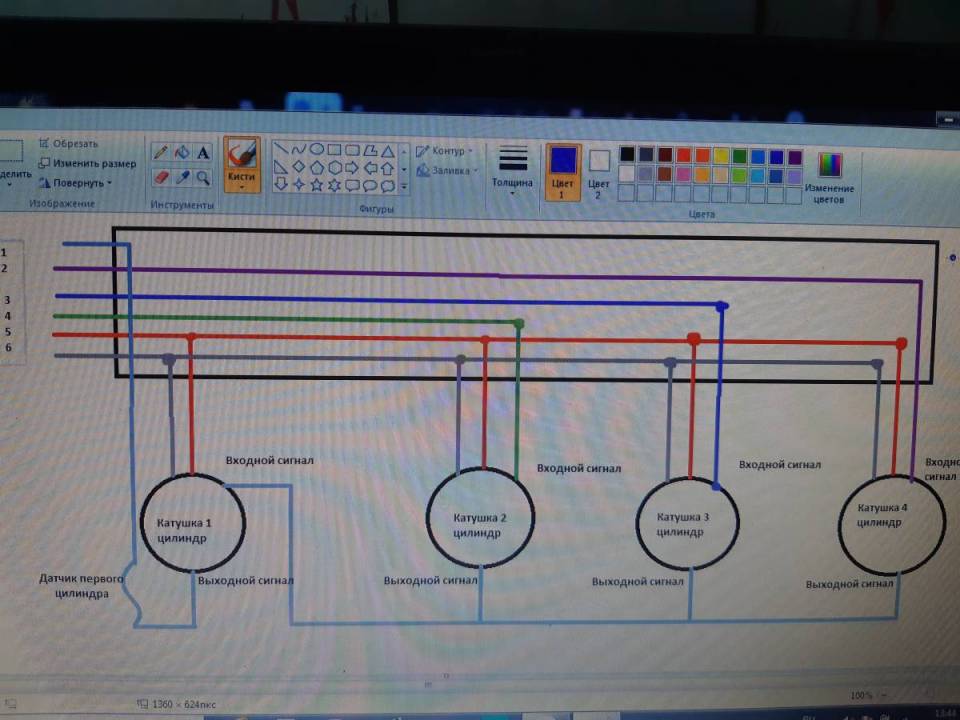 Я тоже очень долго не мог на какой датчик ругается система, пока не разобрал катушку))) И да, схема верная 100%. И первый цилиндр сам по себе не включается. Он только через 2-й включается, я прозванивал схему.