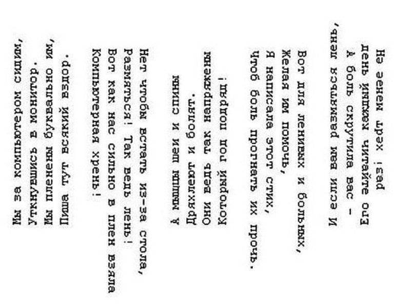 Этот сложный русский язык: Задело - за дело. И дико мне - иди ко мне. Покалечилась - пока лечилась. Мы женаты - мы же на ты. Ты жеребенок - ты же ребенок. Несуразные вещи- несу разные вещи. Ему же надо будет- ему жена добудет. Надо ждать - надо ж дать.