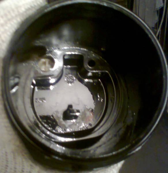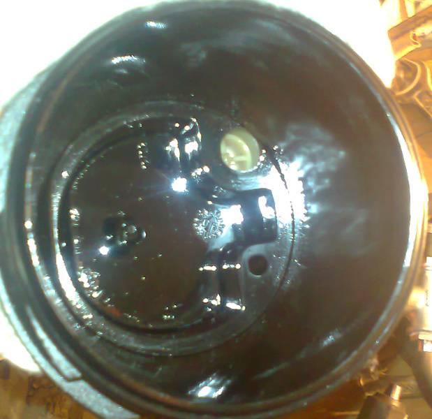 сливал отстой отседава - воды там никогда не видел, воможная проблема может быть ещё в том что вкладыш своей нижней частью практически вплотную прижимаецца ко дну стакана (выступ вокруг отстойника имею ввиду) и соответсвенно к отверстию откуда солярка поступает, водица может остаться до вкладыша т.к. отстойник сделан! внимание в отфильтрованной части топлива, а вода чз фильтр для CR не очень то легко проходит. (где то читал что есть фильтра для лучшего осаждения воды на внешней стороне фильтра - есть те у которых на внутренней к каким относится фильтр вкладыш наш не в курсе)Вот и видим - заправляемсо - с колонки на заправке в бак попало немного воды , или же тёплую солярку с антигелем или керосом льём в бак при температре на улице -15 - в баке конденсата немножко выпадает. вода попадает в стакан но не успевает проникнуть сквозь фильтр и оседает в нижней части стакана до фильтруещего элемента и примораживает как раз подачу топлива. У меня лично других идей нет теперь почему я утром в -10 не смог завестись апасля заправки за день до этого - но после часа простоя со включеной вебастой она таки завелась. по-доброму конечно, спасиб Юрик за консультацию Стакан этот у меня уже в гараже отдельно от машин стоит как доберусь конечно посмотрю повнимательней.просто не обращал внимание на эту полость на картинке, потому, как в своём стакане помню тока выемку по центу фильтра. Посему и все мои рассуждения выше. Зима пришла - снега уже навалило чуток - поехал за санками в гараж и заодно сфоткал внутренности стакана фильтра.Ниже фотки моего стакана - явно видно, что отстойник в отфильтрованной части топлива. (как читал вода таки проходит чз бумагу в фильтре (продавливается за счёт давления в контуре низкого давления) - но за счёт поверхностного натяжения собирается в небольшие капли на внутренней стороне фильтра и скатывается вниз в отстойник). фото уплотнительной резинки снизу фильтра вставки: Так же увидел, что термоклапана для перенаправления топлива на подогрев от ОЖ тупо нет - просто дырка... Отверстие для слива отстоя см (красный провод торчит из отверстия слива) находится в нижней точке стакана, что вполне логично Засветом вспышки видно присутствие мельчайших частичек пыли/грязи - от этого и нужно промывать/продувать стакан при замене вкладыша. Не парюсь теперь про это т.к. мой пластиковый стакан занял почётное место на полке в гараже