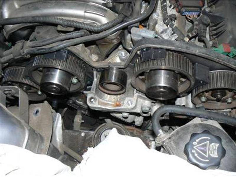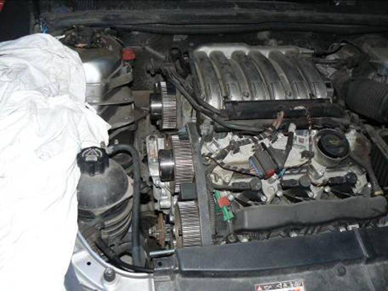 Пежо 607 2002 г.в., двигатель 3л V6 ES9J4S пробег 105 т. км. Россия Имеется опыт капитального ремонта двигателя 21083, решил попробовать свои силы с пежо. Откровенно говоря никогда не писал о проделанных работах, но поймал себя на мысли, что иногда лучше посмотреть со стороны на работу дабы осознать нюансы. Прошерстив форум и просторы интернета была найдена информация только по двигателям с меньшим объемом, а в 3-х литровый рекомендуют не соваться. Я соглашусь с данной рекомендацией для тех, кто хочет получить результат не осознавая что конкретно необходимо сделать. Надеюсь, мой опыт поможет вам понять технологию работы. В первую очередь был заказан в existе оригинальный комплект замены ремня ГРМ, обошедшийся чуть больше 12 тыс. руб., оригинал помпы и прокладка помпы. В том, что ремень ГРМ не менялся – я был уверен, а вот состояние ремня генератора решил оценить по ходу работы. Когда получил комплект на руки, немного разочаровался – марка ремня – Dayco, вроде лестных отзывов не слышал. На помпе сбоку набита маркировка, соответственно привалочная поверхность в этом месте немного деформирована. Натяжной ролик немного люфтит. Однако когда снял старый комплект – все детали – 3 ролика вспомогательных, 1 натяжой и ремень оказались точно такой же марки (SKF & DAYCO), а причиной люфта натяжного ролика являлась ослабленная гайка регулировки. Помпу подшабрил, плоскость вывел. Прокладку помпы заказал зря – шла в комплекте с помпой. Весь объем работ, в приципе, можно выполнить за пару дней. У меня он растянулся на неделю – по ходу работ пришлось докупать необходимый инструмент – головки на 16 (все силовые болты) на 6, 7 (кожух ГРМ), набор торксов. Кроме того прикупил динамометрический ключ с трещеткой 5-25Нм, силовой до 250 Нм был. Поехали. Снимаем крышку двигателя. Аккуратно тянем крышку вверх участками (не сразу всю) – по периметру 6 или 7 резиновых защелок. Главное – не спешить и все получится. Домкратим правую переднюю сторону, снимаем колесо, подкрылок, брызговик ремня вспомогательных агрегатов. Кстати, опора домкрата выгнута на внешнюю сторону, похоже не держит нагрузку. Интересно – так у всех или это только моя проблема? Снимаем левую и правую крышки под капотом, защиту двигателя снизу, домкратим двигатель для снятия верхней опоры. Кстати, в руководстве рекомендуется подвешивать двигатель, а не домкратить и этому есть причина. Для распределения нагрузки на весь поддон обязательно использовать подкладку – у меня это лист фанеры 15 мм. Однако при опоре на поддон ужимается прокладка и он начинает течь. Обтяжкой устранить течь скорее всего не удастся – поэтому запланируйте смену масла с заменой прокладки поддона. Снимаем верхний реактивный кронштейн подвески двигателя и правый кронштейн подвески двигателя Ремень вспомогательных агрегатов снимается очень просто – необходим квадрат 10х10 (3/8 дюйма). Я подпилил болгаркой гнутый шестигранник – вставляем в отверстие на натяжителе, поворачиваем по часовой стрелке и скидываем ремень. Снимаем натягивающий и вспомогательный ролики, делаем выводы о необходимости похода в магазин за запчастями. У меня на роликах уже была выработка 0,5мм, подшипники люфтили, ремень, похоже не менялся с завода. С приобретением ремня генератора и роликов я провозился больше всего. Ремень заказывал неоригинальный по каталогу соответствия на exist, ма