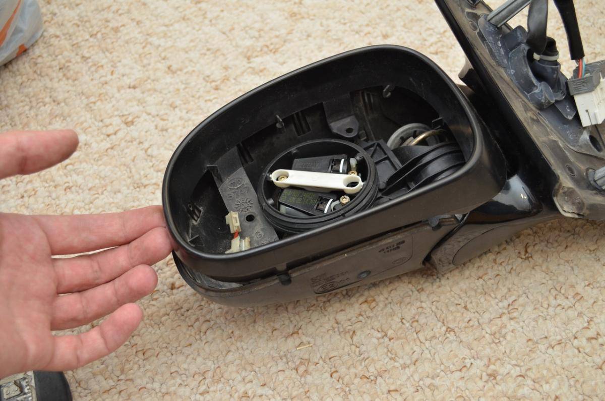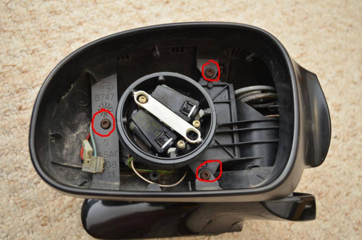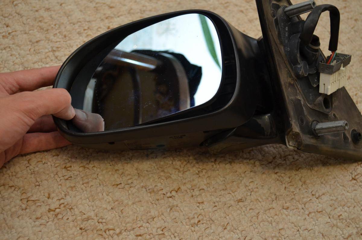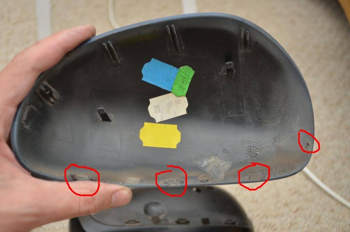 Складывал свое зеркало, водительское, и оно предательски бздынькнуло внутри, после чего болталось как хотело. Речь не о том, когда рабирал зеркало не хватало мне вот этой инструкции (убил первый раз много времени): Само зеркало Выворачиваем стекляшку максимально вверх (это можно сделать заранее приводом, но и руками нормально ворочается) Далее видим те самые преславутые 2 усика Берем тонкую отвертку или еще чего и нажимаем на усики в противоположные стороны (правый усик жмем в направлении корпуса зеркала и в лево). Сломать ничего нельзя, бояться тоже. После того как усики отщелкнулись, отводим их в стороны (правый в право, левый в лево), это облегчит снятие зеркало. Усики полностью исчезли за зеркалом или свободно болтаются? Вы все правильно сделали! Фото данного действия нету, не удобно одной рукой было снимать. Далее пальцами расшатываем саму стекляшку, в право, в лево. Можно поддеть с низу деревяной лопаткой для приготовления еды (только жене не говорите). И с другой стороны Усики, которые отжимали Открываем заглушки на контактах (как видим зеркало без обогрева, дорожек уже нет) Далее снимаем клемы. Но не все так просто, необходимо их разжать тонкой отверткой, т.к. они будут сидеть в отверстиях контактах зеркала. Клема Контакты зеркала (т.е. клема цепляется за дырки и вырвать можно только с контактом (еще раз убеждаемся что дорожек на обогрев нет )) Если необходимо разобрать зеркало дальше, как мне, то откурчиваем эти три болта (если у твоего друга много отверток звездочкой, знай, у него пыж!). И приподнимаем за край коруса Далее руками отклоняем механизм в крайнее левое положение, это необходимо, чтобы снять этот элемент Который крепится всего на 3х болтах и этой защелки (так зеркало отгибать не стоит, просто для ознакомления) Все, часть корпуса снята Моторчик и арматура зеркала крепится на эти вот защелки Все, ничего сложного, пока ничего не сломали Любуемся У меня беда была именно с этим (пришлось покупать другое зеркало) После замены корпуса у меня была задача снять задний молдинг, который в цвет кузова. Естественно я извращался над купленным зеркалом. Поломал все нижние крепления, это видно на фото. Но в конце я понял, что я это сделал зря, ведь полностью корпус снимается и не надо было отсегивать этот молдинг. Хотя он и так хорошо держится, если пройтись силиконом то будет даже еще лучше. Обвел то что сломал Далее оставлю фото крепления, может у кого и получится снять ничего не сломав То что отломалось Все зеркало полностью разобрано. Далее собираем в обратном порядке, ничего сложного. Только нюанс с зеркалом и крепления этих усиков. Просто сжимаем с верху на поволоку, это поможет сместить всю конструкцию в низ (не знаю как объяснить но это помогает ) Защелкиваем усики на креплении. Изначально я снашался и пытался из застегнуть сразу на зеркале... Возвращаем механизм в исходное положение, вверх Ставим зеркало и равномерно нажимаем на крепление, слышим хруст щелчек, зеркало сидит на месте. Проверить село зеркало на место или нет, можно так-же, поболтать его пальцами из стороны в сторону.