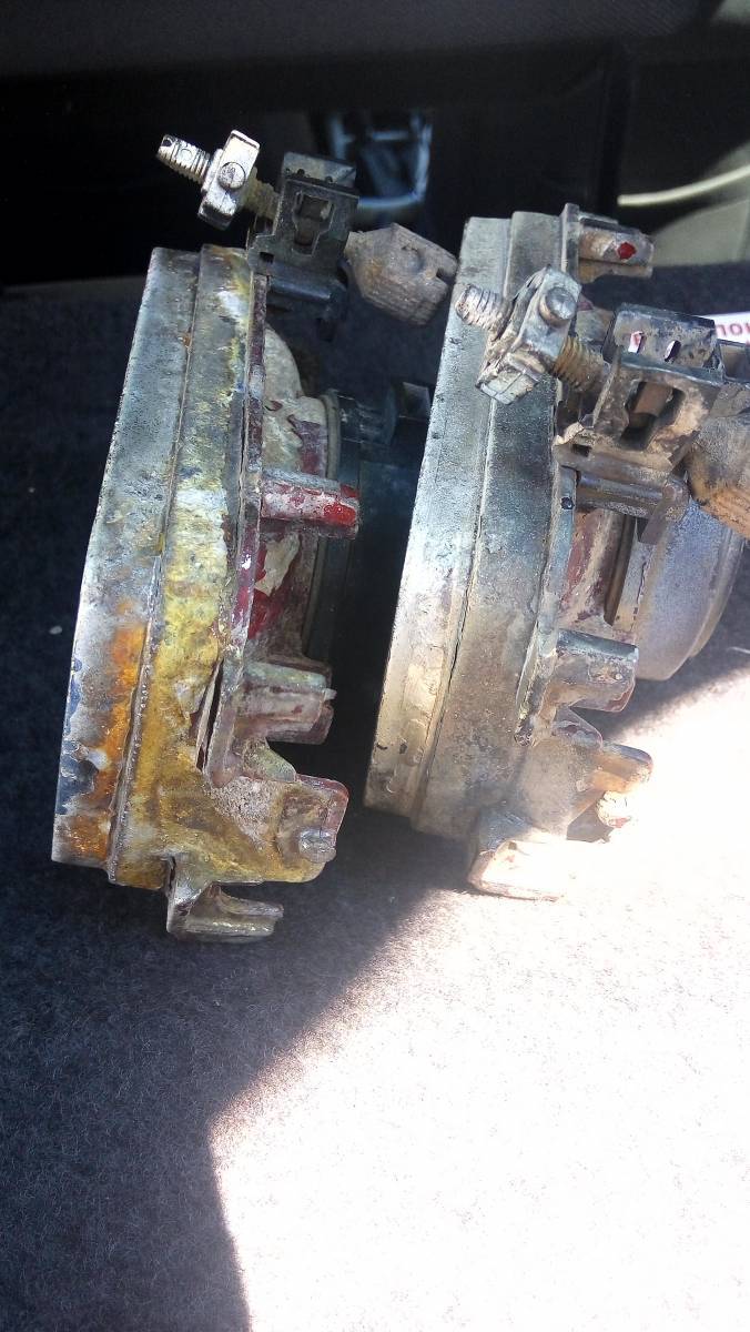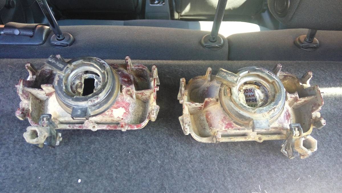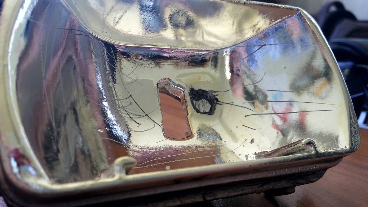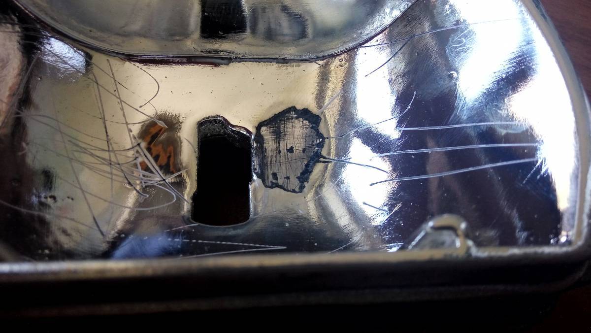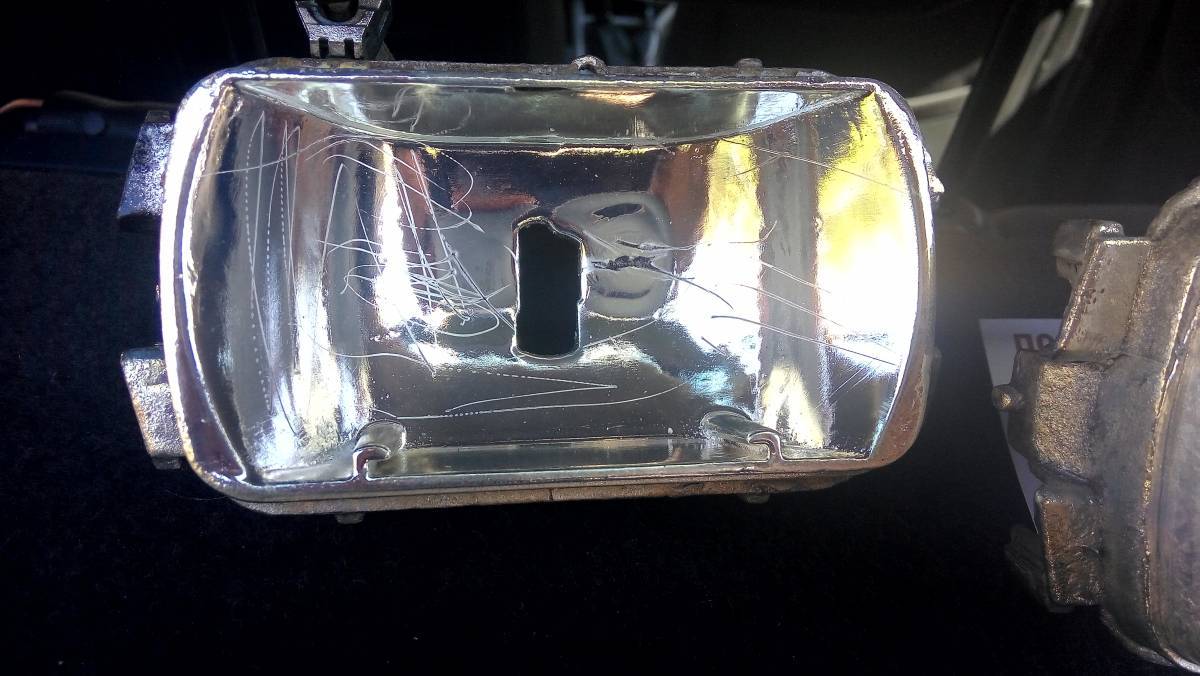 2. Решил я восстановить отражатели на противотуманках, интернет не богат в РБ по таким работам, и всего ничего предлагалось делать в трёх местах, это то что я нашёл в течении пару часов. Один вариант в Мозыре за 65 пару без гарантий и второй на Бабушкина 2в в Минске за 50 рублей, ну что тоже скажем так не дёшево совсем, но всё же дешевле, чем купить новые туманки. По телефону обговорилось что всё при галогене будет держаться, только нельзя что бы попадала влага и т.п. Привёз на Бабушкина, красильщика там нет, есть тот кто принимает изделия, оговорил с ним все нюансы, что пескоструить нужно всю, так как окисление идёт, и если не зачистить, то через месяц оно залезет под хром и снова его поднимет, оговаривали и то что обязательно должна быть чёткая очищенная полка под уплотнительную резинку, туманки регулируемые и на гермет они не садятся, на что он мне втирал, что да всё понимает, и такая работа может будет чуть дороже, ещё предупредили что хром руками трогать нельзя. Ну собственно, вот результат. Когда забирал туманки, естественно исполнителя на месте не было, приёмщика тоже, был новый парень, который как всегда не в курсах. Предложил ему испортить хром и отдать мне их без оплаты, что он без согласия исполнителя тоже не смог сделать. Хром нанесён, даже не знаю, а хром ли это? такое ощущение что его с баллончика напыляли, пескоструем под ним и не пахнет, так как видны грубые риски наждачки, много мусора и по центру подтёки этого самого материала. Зеркала как видно нет совсем. Далее был звонок, небольшая ругань, поцарапанные туманки и никакой оплаты. Печалька, 17год на дворе, а сервис там же. ооо, а теперь внимание, это так они пескоструили под слоем "хрома" старый слой.